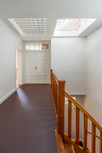Ein historisches Oberlicht aus Glasbausteinen von 1904 wurde nachempfunden und mit einem schmalen Steg verbunden eingebaut, sodass das Treppenhaus jetzt mit mehr Tageslicht versorgt wird. Ganz besondere Details, wie farbige Mosaik-Verglasungen, die behutsam aufgearbeitet, restauriert und repariert wurden, machen das Objekt zu einem außergewöhnlichem Wohnort.