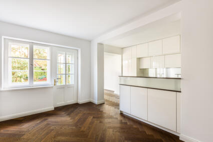 Beim Umbau und der Sanierung mit modernen Wohnansprüchen verlangten deshalb die strengen, denkmalschutzrechtlichen Auflagen nicht nur bei Bodenbelag und historischer Raumaufteilung einen gestalterischen Spagat. So musste sich der neu geschaffene Wintergarten-Anbau mit moderner Stahlfassade unter den bestehenden historischen Balkon einfügen.