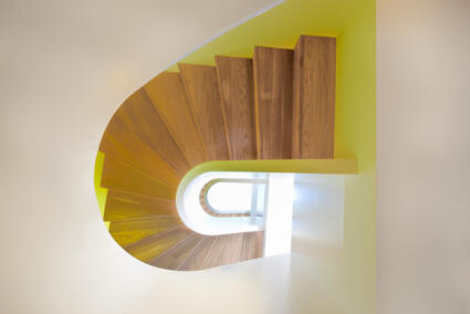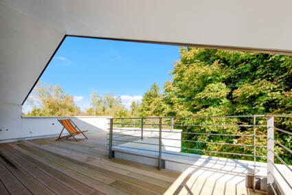 Jedes der drei geräumigen Kinderzimmer im Obergeschoß erhielt eine deckenhohe, großzügige Verglasung über Eck. Der Elternbereich ist im Dachgeschoss mit weiträumiger Dachterrasse situiert. Das Gebäude wurde in Holzbauweise ausgeführt. Heizung- und Brauchwassererwärmung erfolgen mittels Wärmepumpe. Zudem wurde eine Wärmerückgewinnungsanlage integriert, um eine ausreichende und angenehme Lüftung zu gewährleisten.