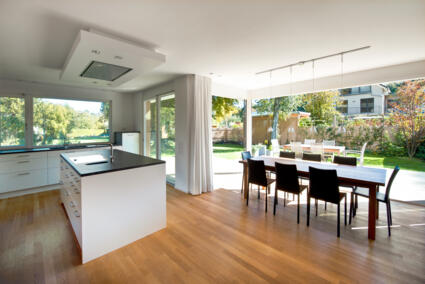 1920 wurde in München-Johanneskirchen eine Siedlung kleiner Doppelhäuser mit großem Garten zur Selbstversorgung errichtet. Um den heutigen Anforderungen eines 5-Personen-Haushaltes Rechnung zu tragen, wurde eine Hälfte des Doppelhauses zu Gunsten eines Neubaus abgetragen. Herz des neu entstandenen Einfamilienhauses ist ein erweiterter Essbereich mit integrierter Küche. Schwellenlose, raumhohe Öffnungselemente lassen im Erdgeschoss Innen- und Außenraum nahtlos ineinander übergehen.